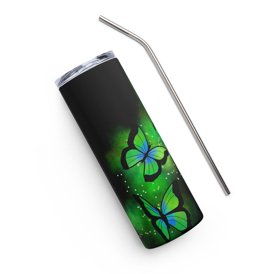 Green Glow Butterfly Stainless steel tumbler