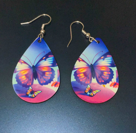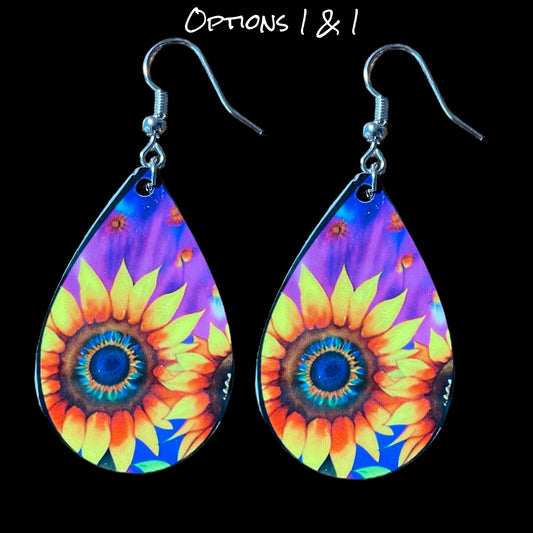 Customizable Sunflower and Butterfly Teardrop Earrings