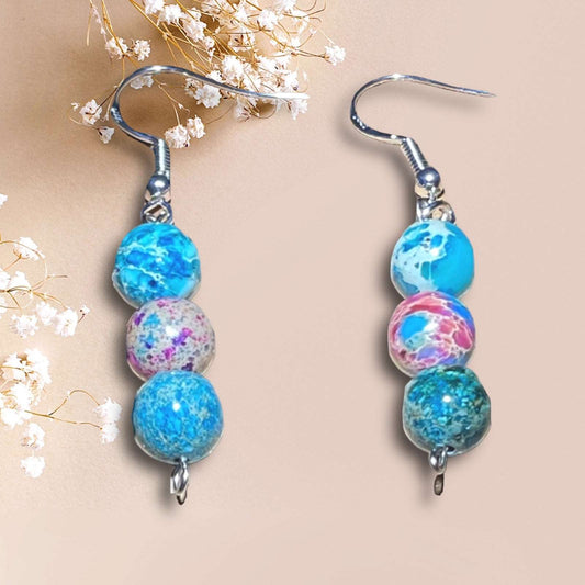 Rainbow and Blue Sea Sediment Jasper Dangle Earrings