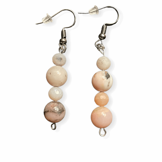 Handmade Pink Opal and Rondelle Dangle Hook Earrings